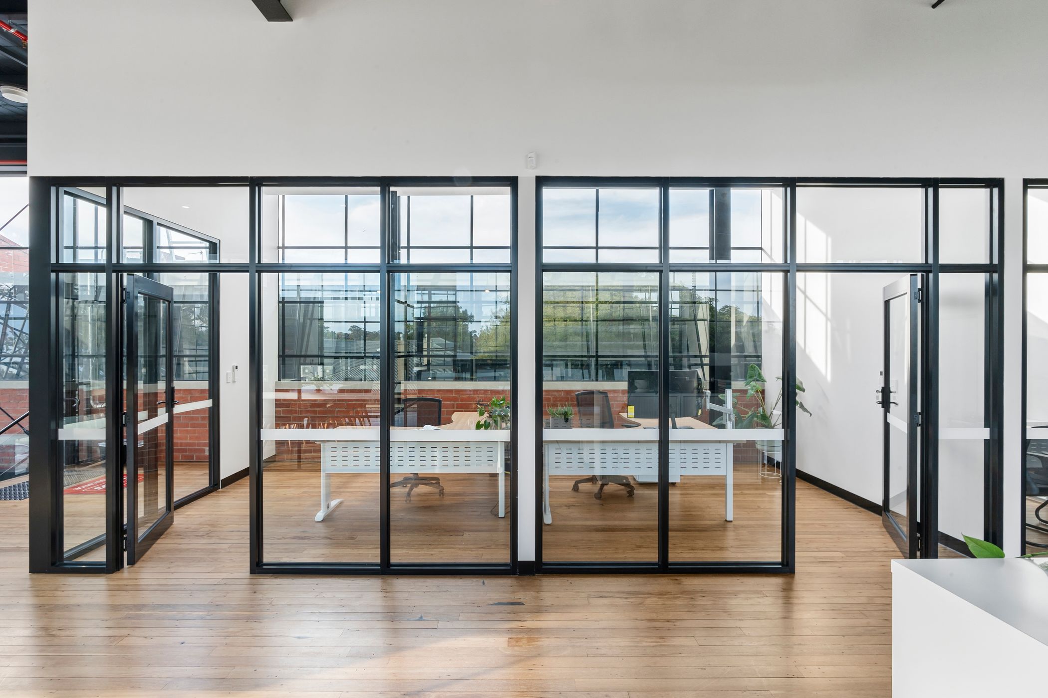 Entrance, open-plan workstations, private offices, breakout room and amenities